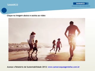 O documento descreve as atividades e iniciativas de sustentabilidade da Samarco, incluindo seu engajamento com stakeholders, programas de voluntariado, e esforços para medir a satisfação das comunidades por meio de um Índice de Satisfação das Comunidades.