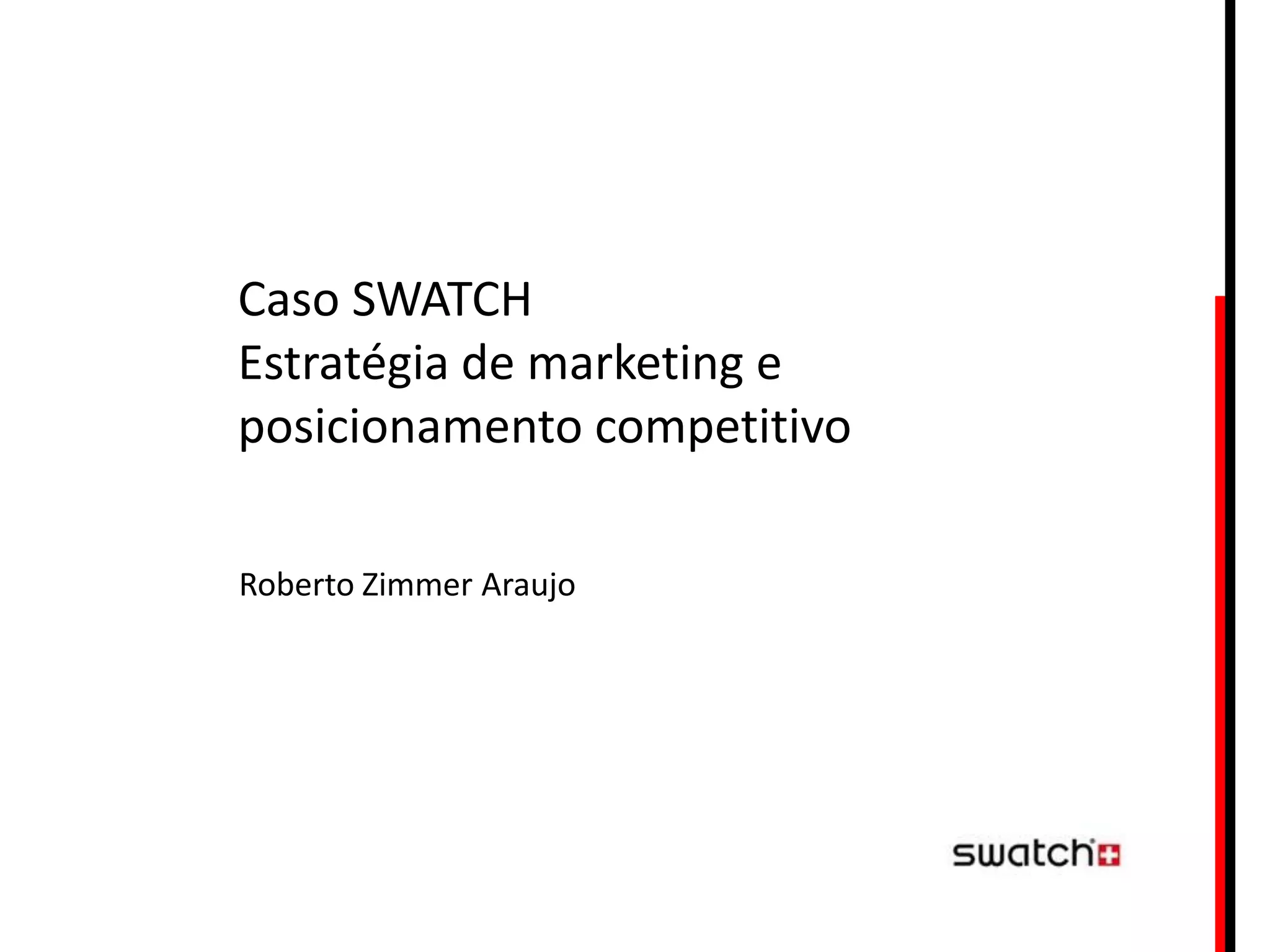 A Swatch surgiu em meio a uma crise do mercado suíço de relógios e se destacou com preços baixos e campanha agressiva de marketing, vendendo 1 milhão de relógios no primeiro ano. Atualmente, possui uma variedade de linhas com preços entre R$190-R$700 e estratégia focada em se aproximar dos clientes por meio de mídia social e customização.