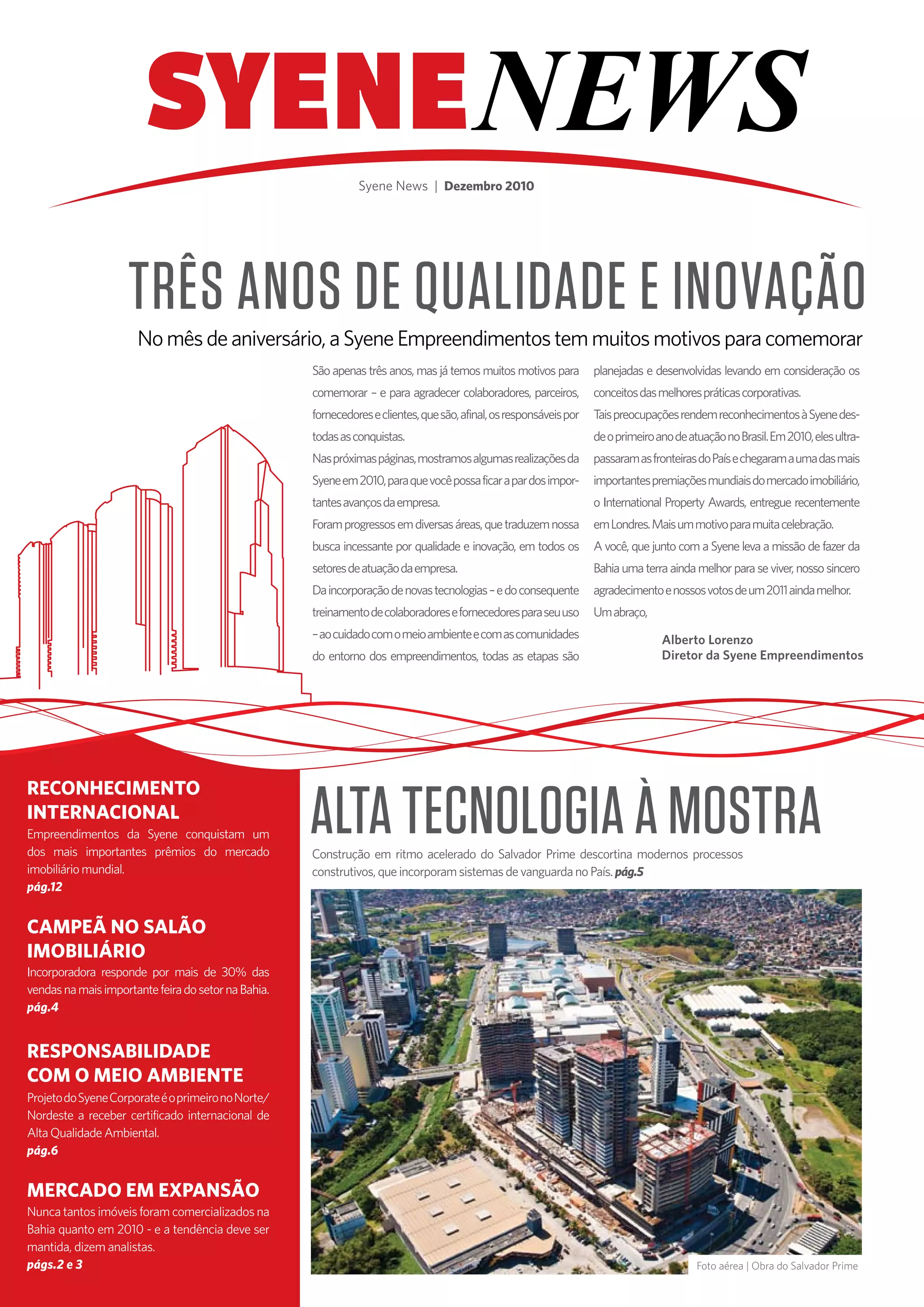 1) A Syene Empreendimentos comemora três anos de atuação no mercado imobiliário da Bahia com forte crescimento e diversos reconhecimentos.