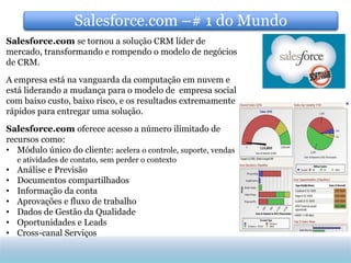 O documento descreve a solução Synaptic Sales/Service Automation Cloud, que é uma plataforma baseada em nuvem da Salesforce.com projetada para automatizar processos de vendas e serviços. A solução integra módulos como gerenciamento de vendas, oportunidades, contas e contatos para melhorar resultados de negócios como taxas de conversão, redução de custos e aumento de vendas. A Synaptic oferece treinamento, suporte e metodologias para garantir a adoção da plataforma.