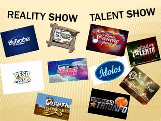 Os documentos descrevem conceitos de talent shows e reality shows. Talent shows enfatizam a demonstração de habilidades dos participantes para um júri, enquanto reality shows retratam a vida real dos participantes convivendo uns com os outros. Embora talent shows possam promover cultura, reality shows buscam principalmente audiência e fama efêmera.