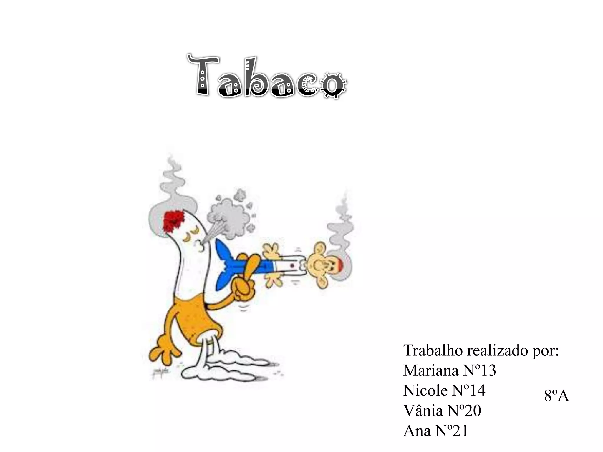 Tópicos Abordados:O queé o tabaco?Constituição do tabaco!Efeitos secundários do tabaco!O tabaco vicia…Por isso há que dizer não…Para além de viciar pesa nas carteiras…Conclusão!