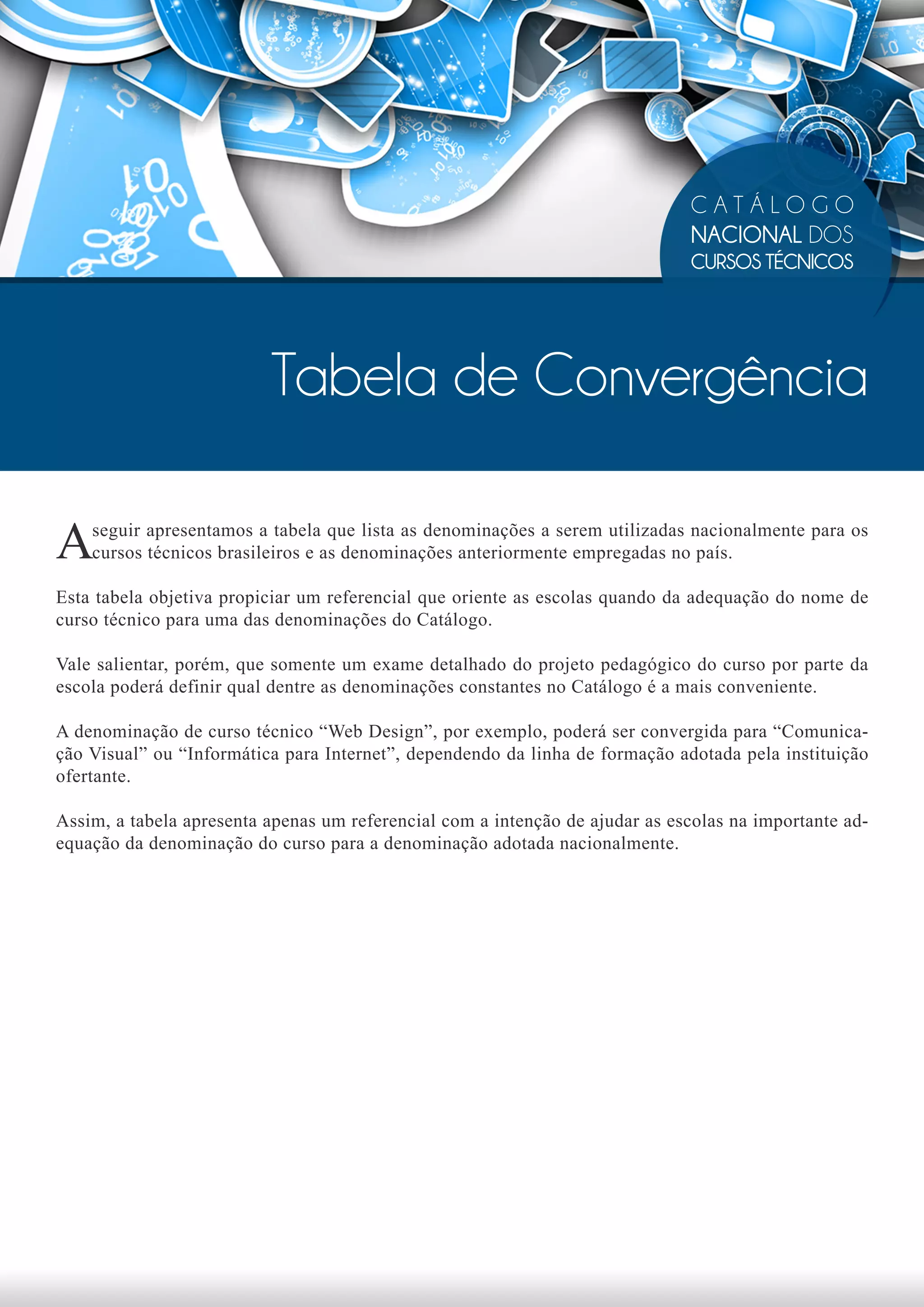 O documento apresenta a tabela de denominações para cursos técnicos brasileiros, incluindo suas denominações anteriores e as correlações necessárias. O objetivo é fornecer um referencial às escolas para adaptarem os nomes dos cursos às normas nacionais. A escolha da denominação mais apropriada deve ser feita considerando o projeto pedagógico de cada instituição.