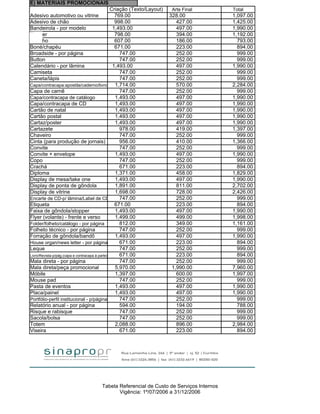 Obs.: Os preços destes serviços devem levar em consideração o custo/hora do profissional.