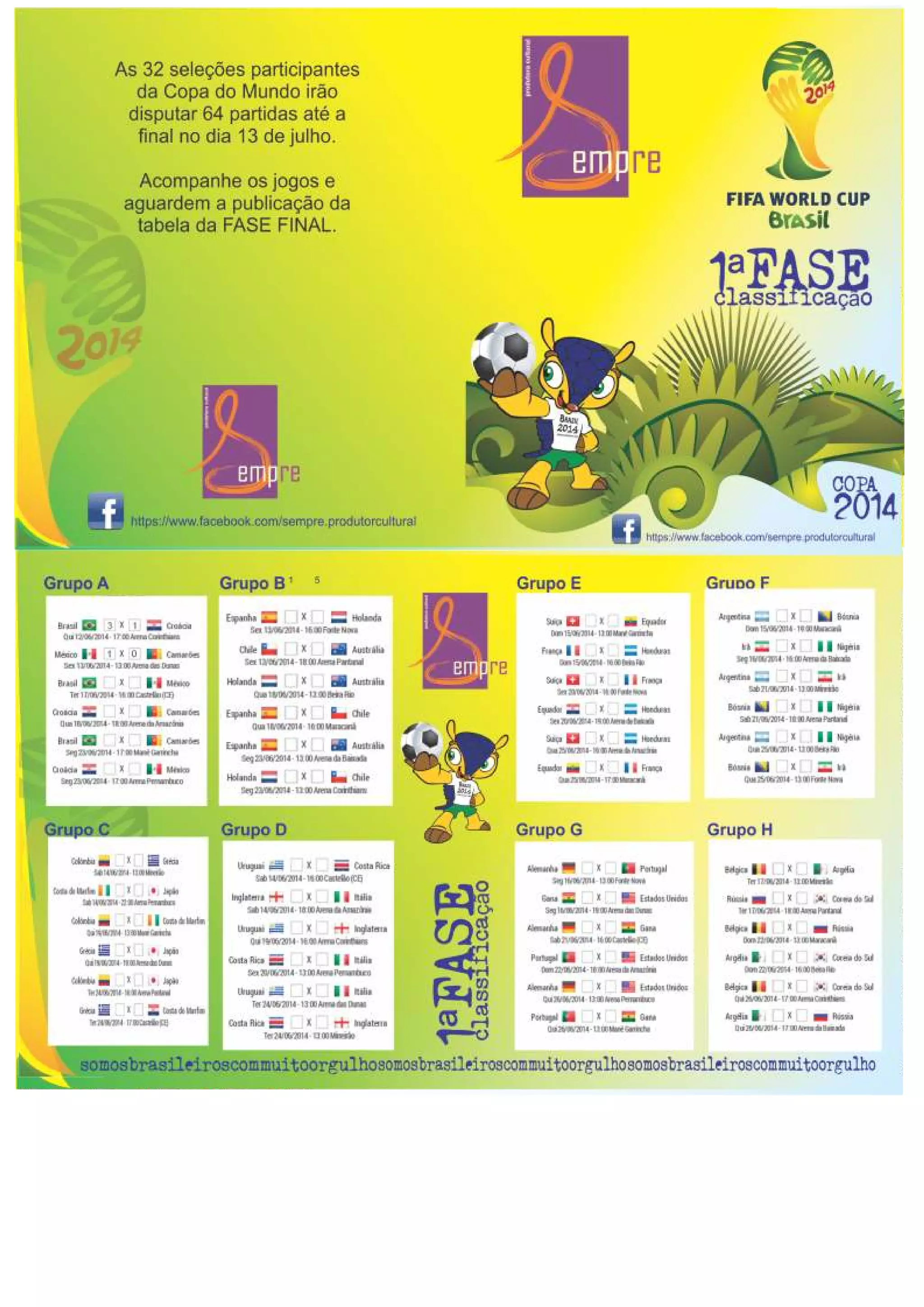 Tabela da Copa do Mundo - 1ª FASE - Classificação