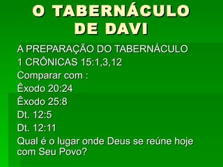 3) A Arca foi levada com grande alegria e celebração até o Tabernáculo de Davi em Sião.