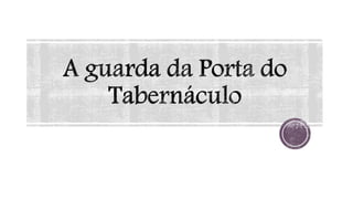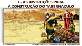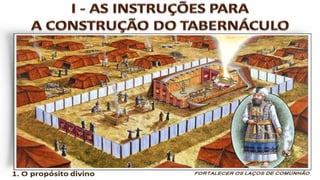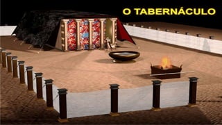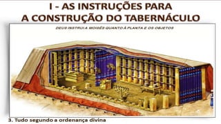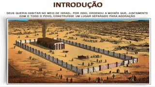 O documento descreve o Tabernáculo construído por Moisés no deserto como um santuário onde Deus habitava no meio de seu povo. Detalha os objetos, sacrifícios e celebrações do Tabernáculo, assim como a organização das tribos israelitas em torno dele. Aponta como o Tabernáculo prefigurava a comunhão entre Deus e os homens através de Cristo.