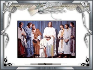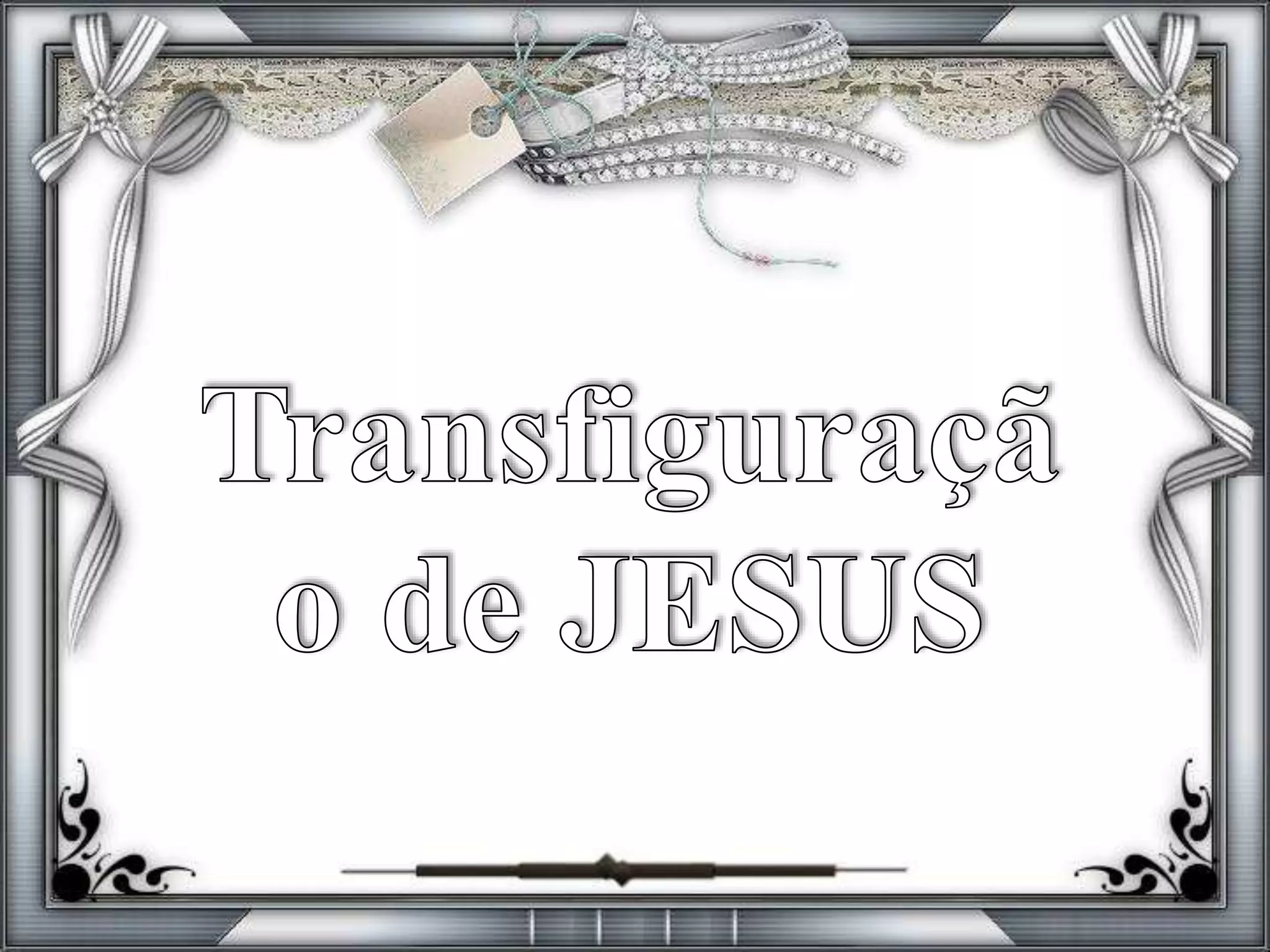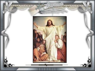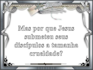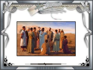O documento descreve os apóstolos de Jesus e suas origens humildes. Ele também detalha a Transfiguração, onde Jesus aparece glorificado com Moisés e Elias na presença de Pedro, Tiago e João. A intenção era fortalecer a fé dos discípulos antes da crucificação.