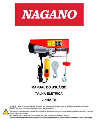1. O documento fornece instruções de segurança e operação para o uso de talhas elétricas.
