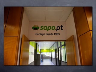 O documento contém informações sobre o SAPO, um site português. O documento anuncia que o SAPO atingiu 1000 apontadores e fornece o URL do SAPO e de outros sites relacionados como developers.blogs.sapo.pt, pon.pt, labs.sapo.pt e codebits.eu. O documento também fornece detalhes de contato para uma pessoa chamada Celso.