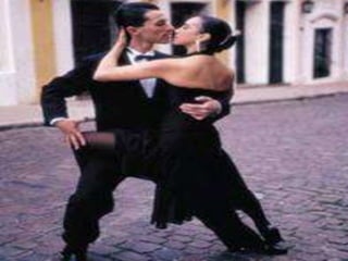 O documento descreve a origem e evolução do tango, desde seu surgimento na década de 1870 em Buenos Aires até se tornar popular em Paris no início do século 20. Também apresenta detalhes sobre os passos básicos e locais onde o tango era apresentado.