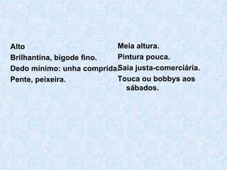 O documento descreve a rotina diária de Mariazinha de Tranças em uma loja. Ela se apaixona por Toninho do Terno Cinza, um cliente bonito e bem comportado. No entanto, seu romance secreto com ele é descoberto por Zé dos Sapatos Lustrosos, que a insulta. Mariazinha fica triste.