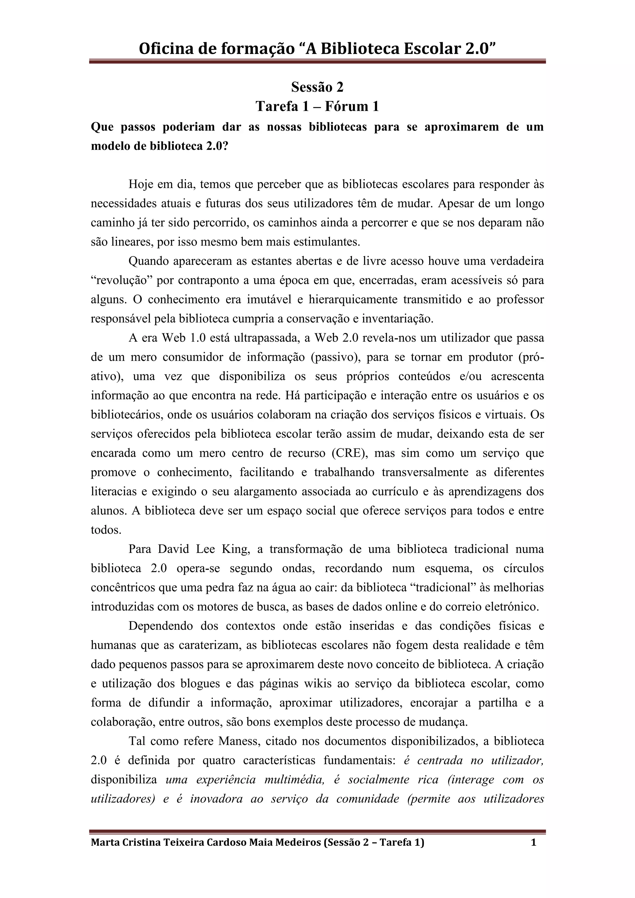 O documento discute os passos que as bibliotecas escolares podem dar para se aproximarem do modelo de biblioteca 2.0, reconhecendo a necessidade de mudança para atender às necessidades atuais e futuras dos usuários. A biblioteca deve se tornar um espaço social que oferece serviços para todos através da participação e interação entre usuários e bibliotecários, utilizando ferramentas da Web 2.0 como blogs, wikis e redes sociais. O perfil do bibliotecário também deve evoluir para acompanhar as mudanças, testando
