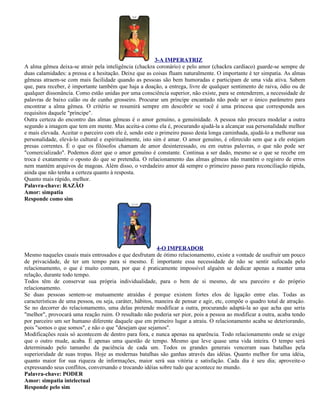 1. O texto descreve o encontro de almas gêmeas como um momento mágico no qual as pessoas se sentem imediatamente conectadas através do olhar, como se houvesse uma mensagem sendo enviada pelo inconsciente.