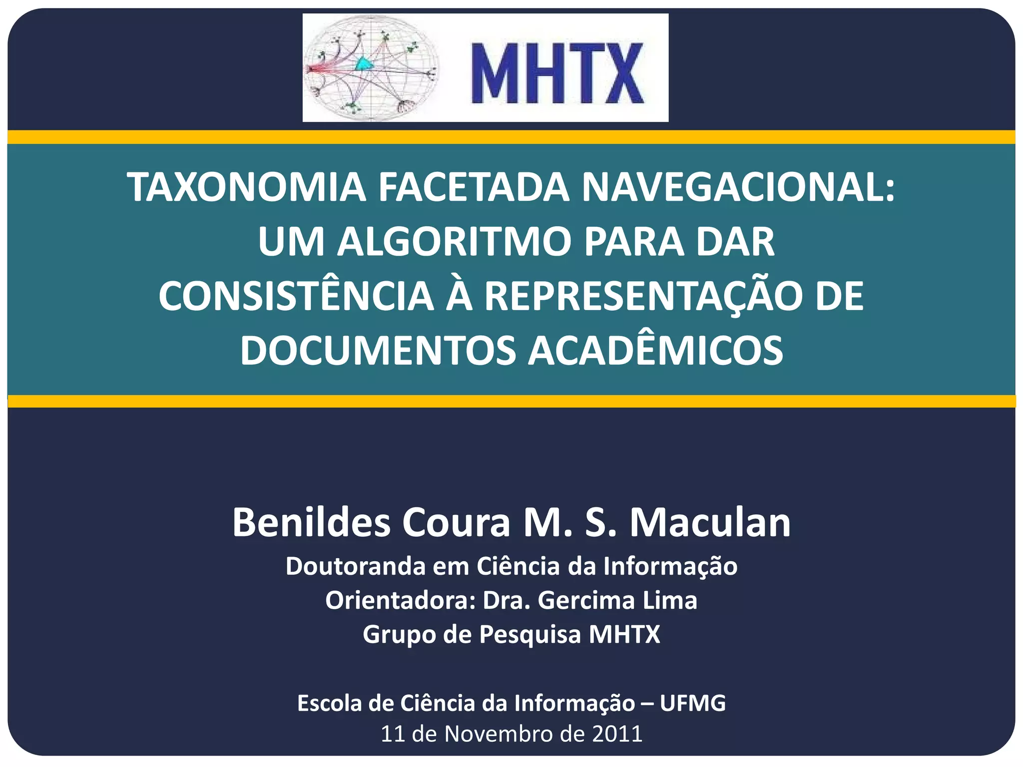 O documento descreve o desenvolvimento de uma taxonomia facetada navegacional para organizar e recuperar informações de teses e dissertações disponíveis em bibliotecas digitais da UFMG. A taxonomia foi criada com base na análise de conteúdo dos documentos para extrair conceitos-chave e categorizá-los em facetas, permitindo buscas mais eficientes. O método possibilitou a indexação de 168 termos e mostrou que a abordagem facilita o acesso a detalhes das pesquisas.