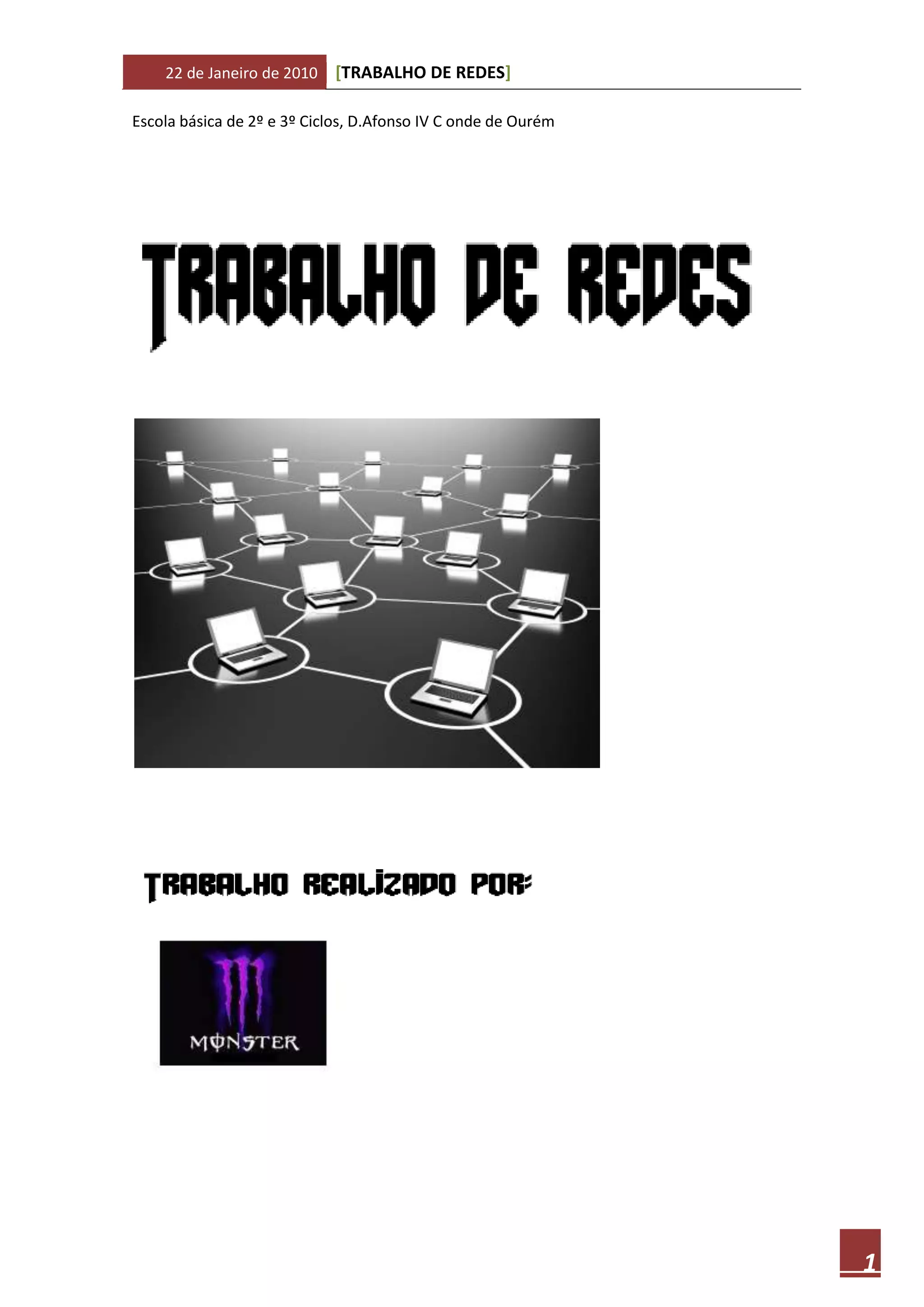 O documento discute conceitos básicos de redes de computadores, incluindo definições, vantagens, o modelo OSI de sete camadas e tipos de sinais, redes e topologias. Descreve as camadas do modelo OSI, sinais analógicos e digitais, redes locais e mundiais, e vários tipos de topologias e cabos de rede.