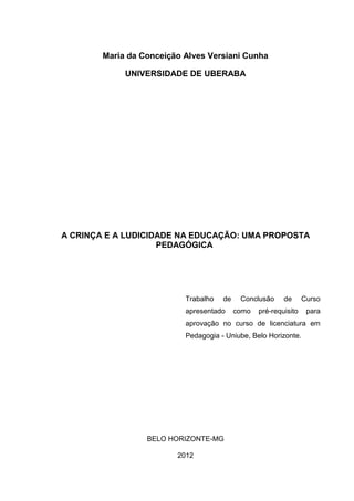 1. O documento discute a importância da ludicidade e das atividades lúdicas no processo de ensino-aprendizagem na educação infantil, especificamente como ferramenta pedagógica que contribui para o desenvolvimento integral da criança.