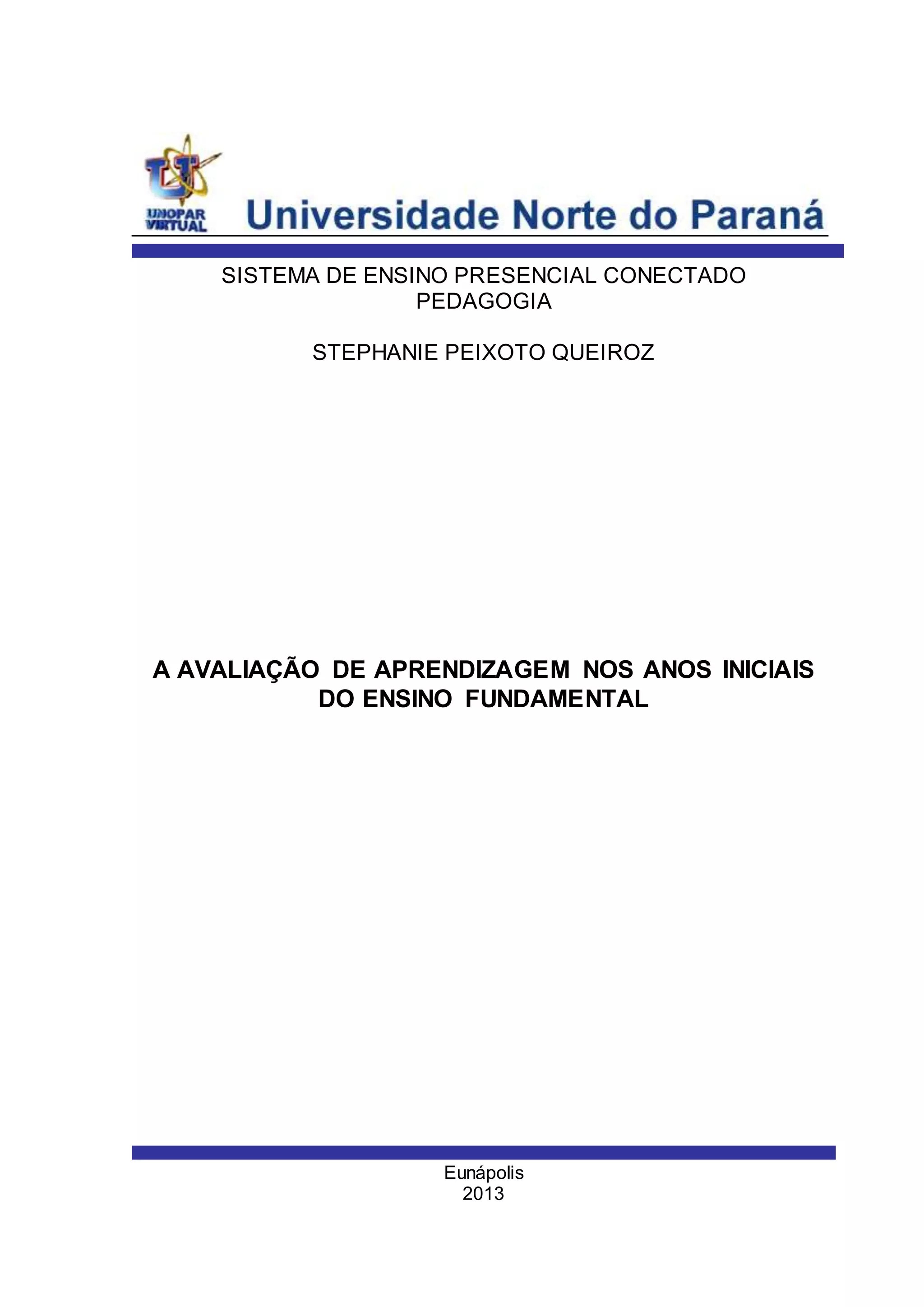 1. O documento descreve um projeto de ensino sobre a avaliação da aprendizagem nos anos iniciais do ensino fundamental.