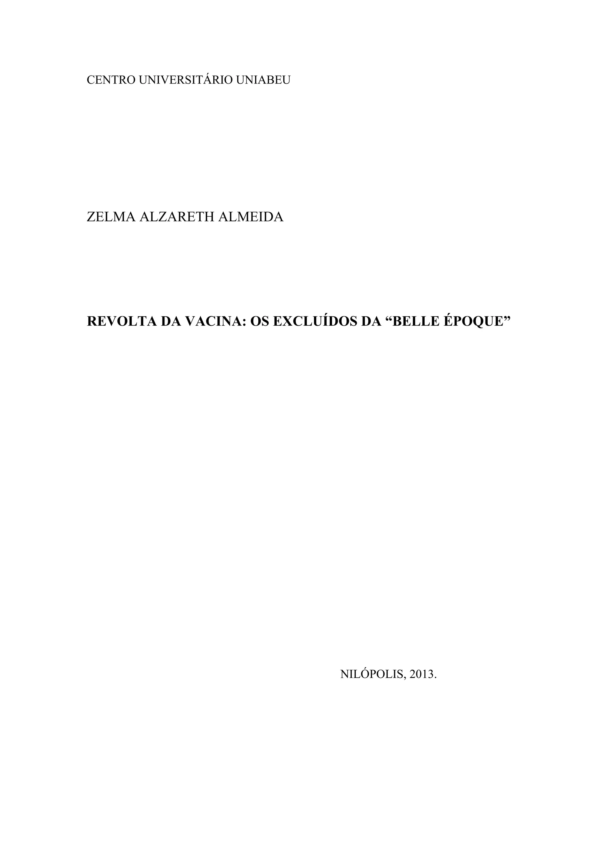 1. O projeto analisa a Revolta da Vacina de 1904 no Rio de Janeiro, quando a população se revoltou contra a lei de vacinação obrigatória.
