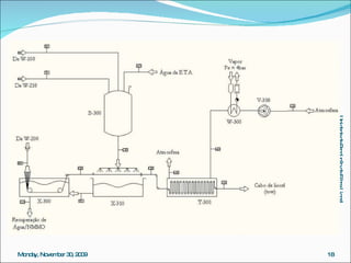 O documento descreve o processo de produção de fibras viscose usando o processo Liocel. O processo envolve dissolver a celulose em NMMO aquecido, formando uma suspensão que é convertida em fibras após evaporar o solvente. Diagramas ilustram as etapas do processo, incluindo balanço de massa e fluxograma. Considerações finais discutem a viabilidade técnica e econômica do processo.