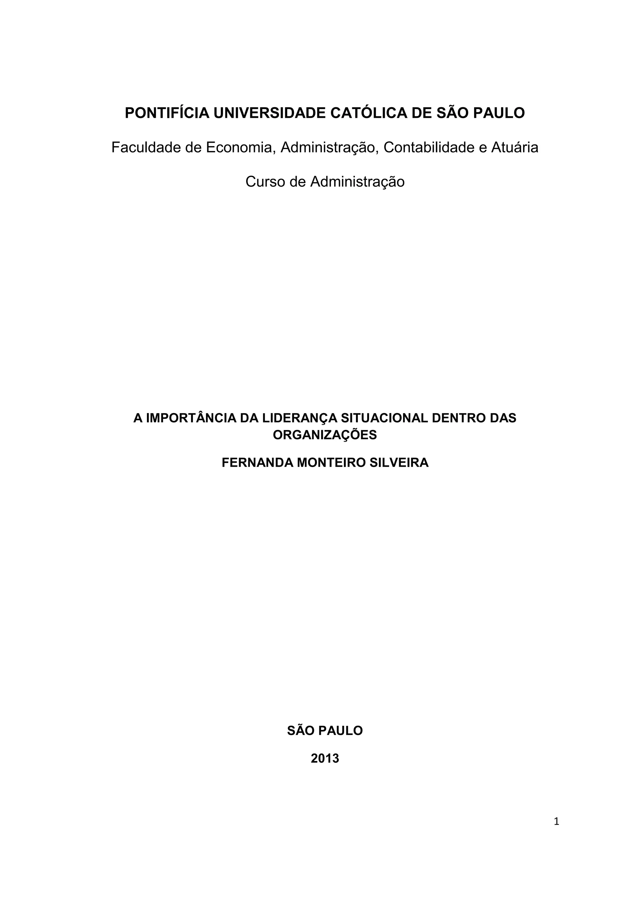 1. O documento discute a importância da liderança situacional dentro das organizações.