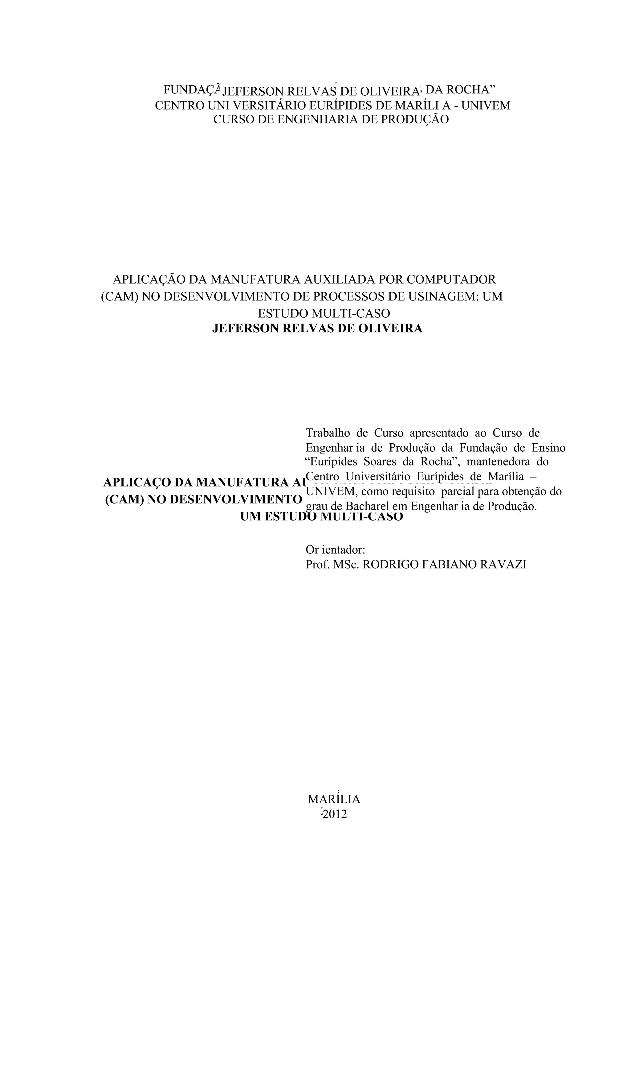 Este documento apresenta um estudo sobre a aplicação da Manufatura Auxiliada por Computador (CAM) no desenvolvimento de processos de usinagem em três empresas. O trabalho descreve como a tecnologia CAM tem proporcionado vantagens como redução dos tempos de programação, aumento da produtividade e qualidade dos processos de usinagem nas empresas pesquisadas.