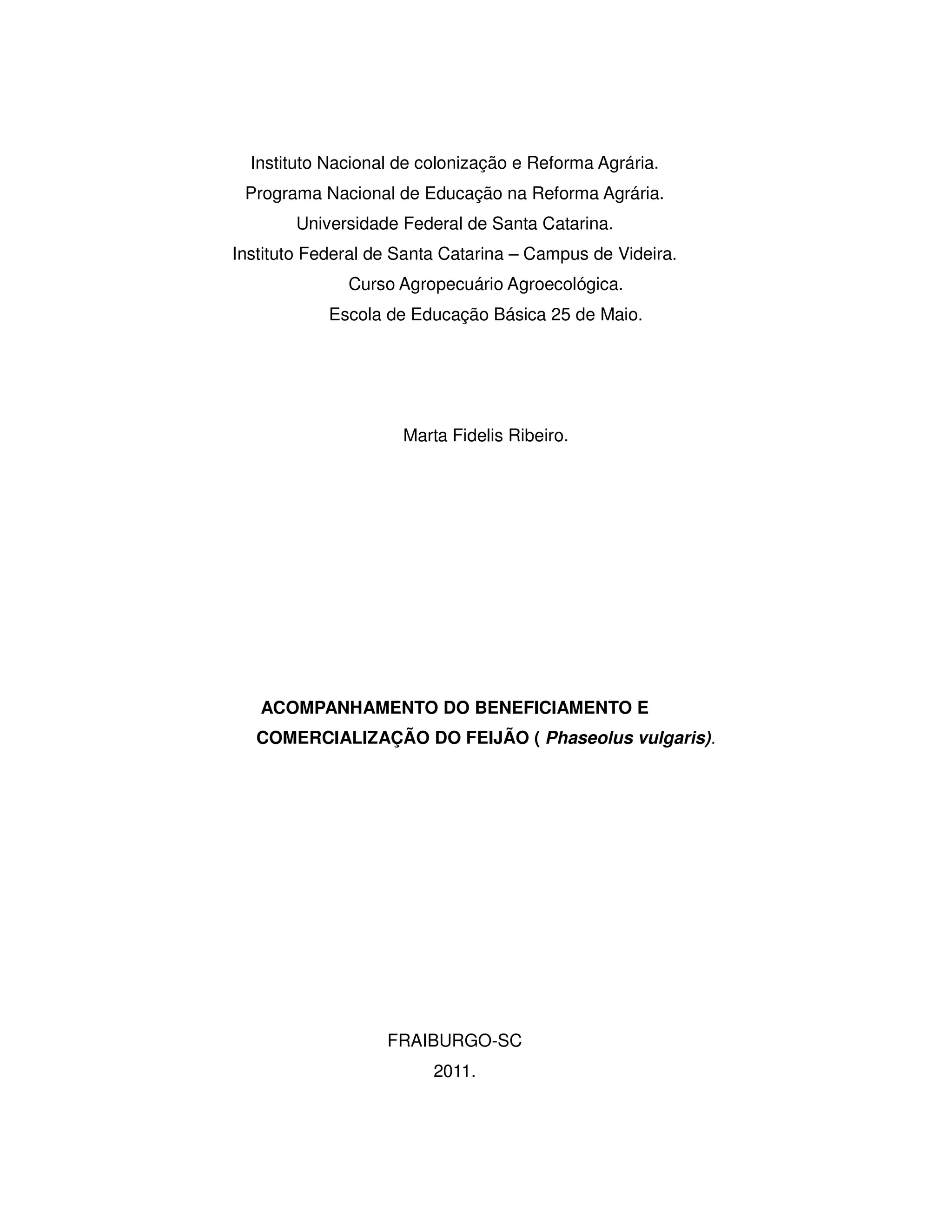 1. O documento descreve o processo de beneficiamento e comercialização do feijão realizado pela Coopercontestado em Santa Catarina, desde a colheita até a certificação e destino final.