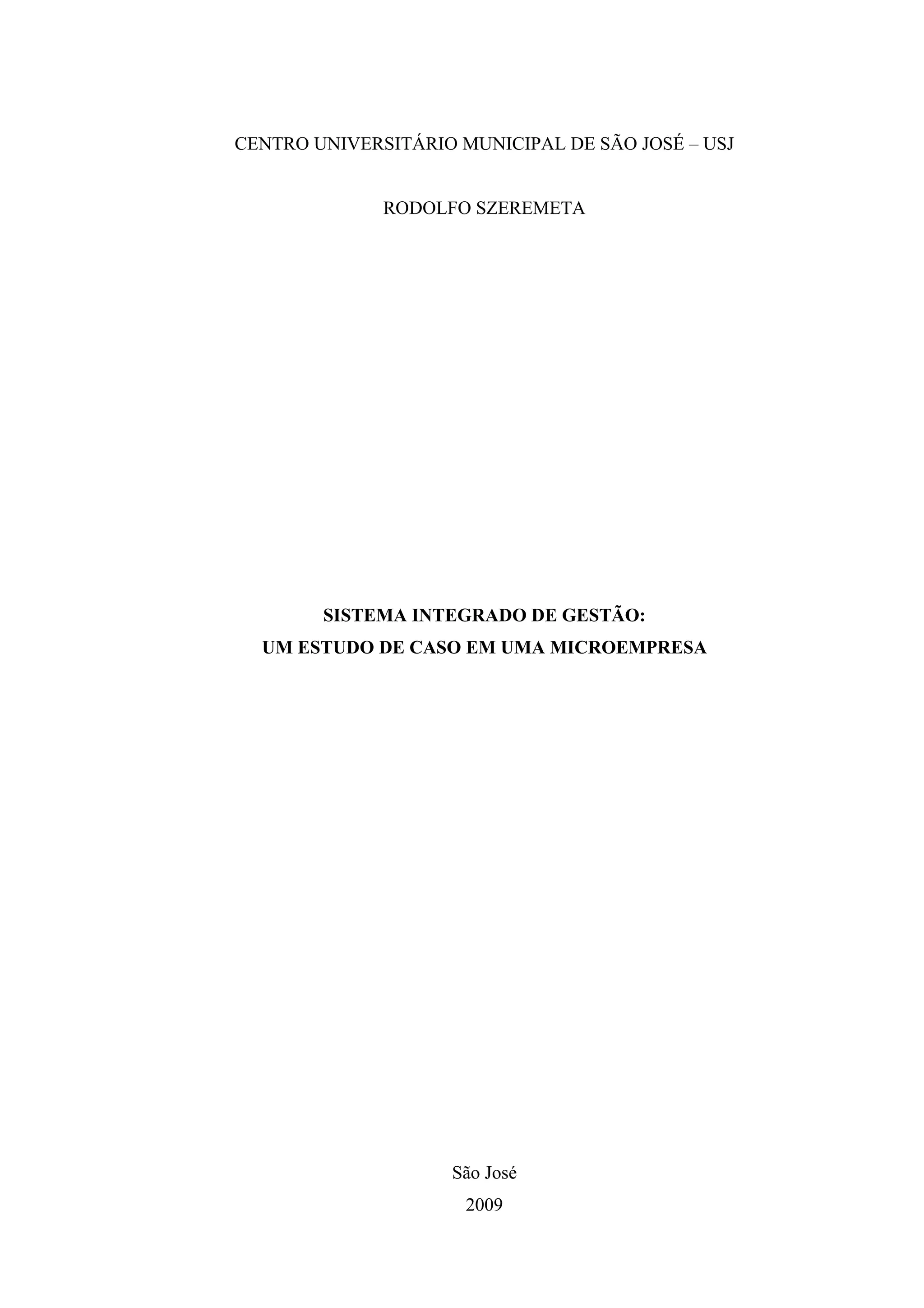 Este documento apresenta um estudo de caso sobre a implementação de um sistema integrado de gestão (ERP) em uma microempresa do ramo odontológico. O trabalho descreve a situação atual da empresa estudada e propõe o delineamento de um ERP para otimizar os processos e apoiar a tomada de decisão. O objetivo é integrar as áreas funcionais da organização e fornecer informações em tempo real para a gestão.