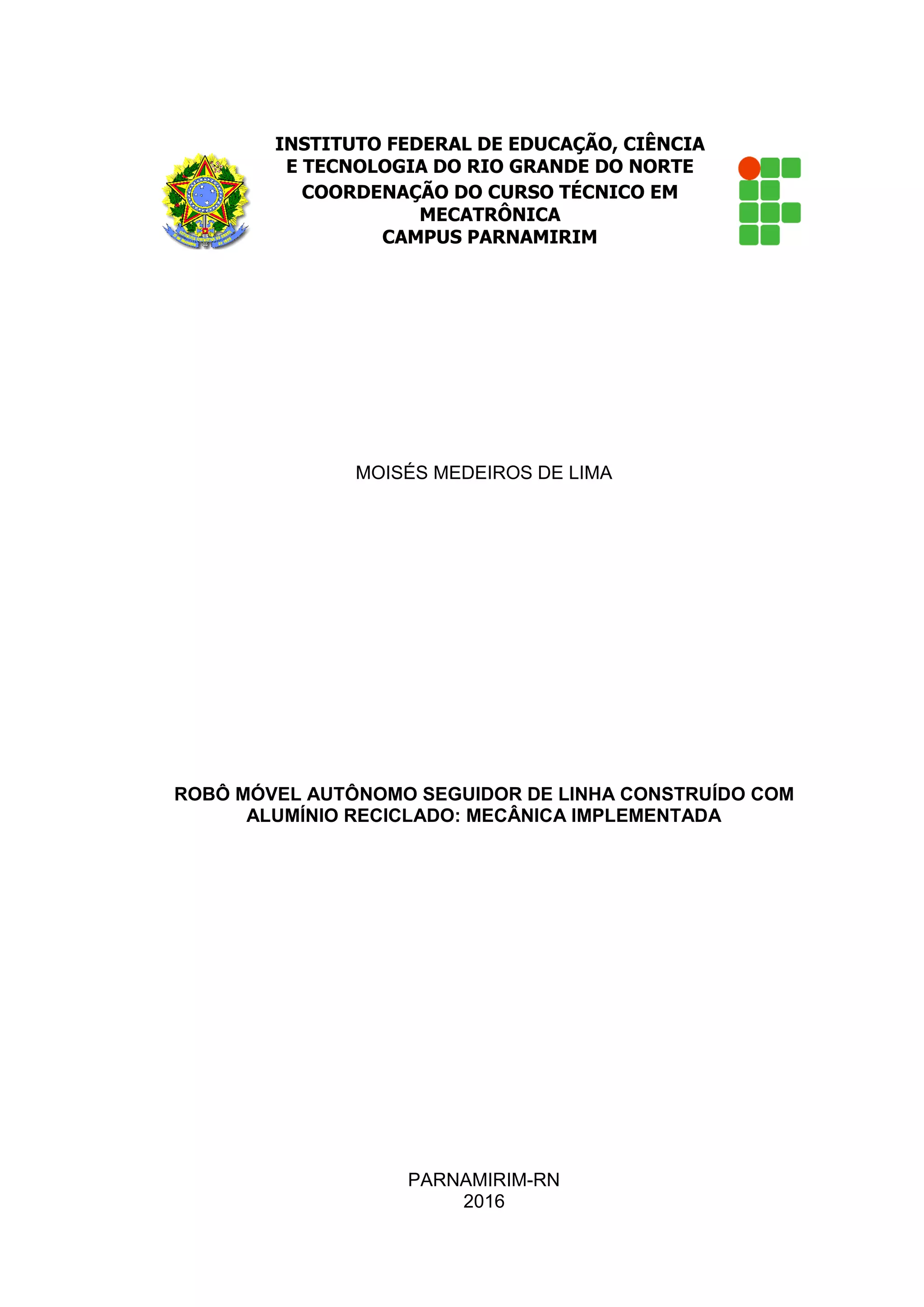 O documento descreve a construção de um robô móvel autônomo feito de alumínio reciclado capaz de seguir linhas. O robô usa sensores e uma placa Arduino para processar informações e navegar em terrenos desconhecidos, fazendo desvios quando necessário. O projeto foi desenvolvido por estudantes do curso técnico em Mecatrônica do IFRN como parte de um projeto integrador.