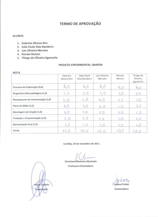 Este documento resume o diagnóstico de aspectos externos realizado pela agência Zamba para o cliente Barion Alimentos S.A. Em três frases: