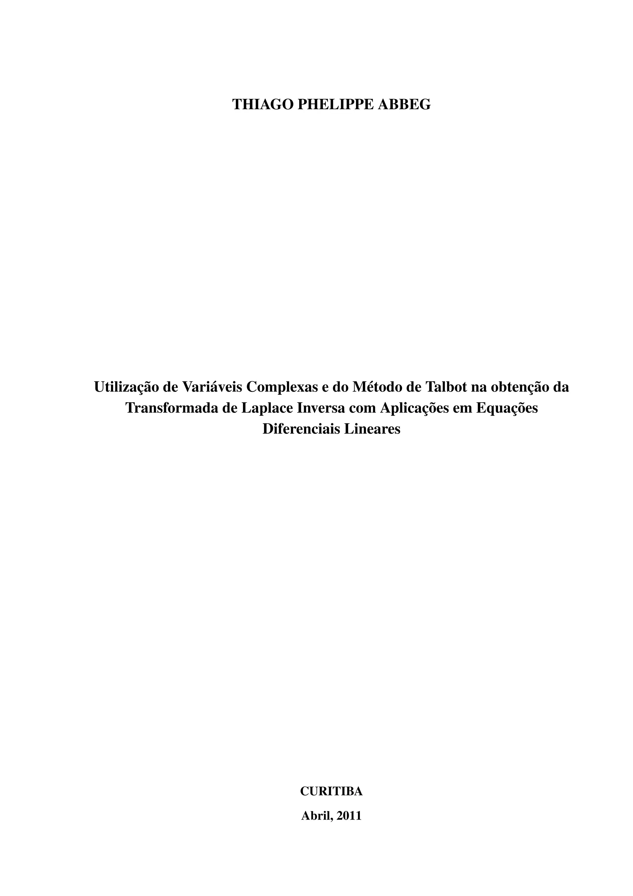 Este documento descreve uma monografia sobre a utilização de variáveis complexas e do método de Talbot para obter a transformada de Laplace inversa e aplicá-la a equações diferenciais lineares. O documento começa apresentando o problema e objetivos, em seguida define noções básicas de variáveis complexas e cálculo complexo. Posteriormente aborda a equação do calor, a transformada de Laplace, suas propriedades e aplicações em equações diferenciais e integrais. Por fim, apresenta o método de Talbot para aproximar a transformada de Laplace
