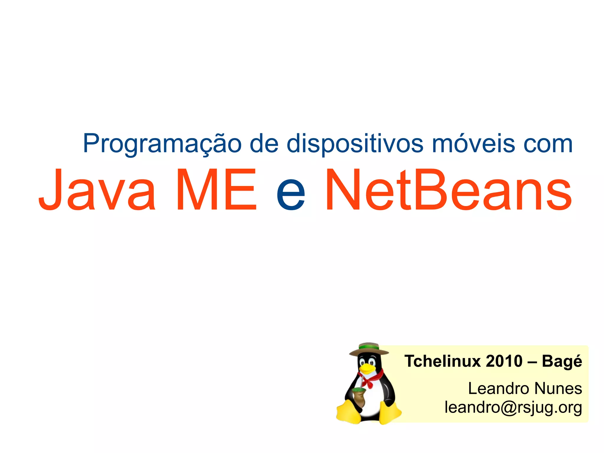 O documento apresenta uma palestra sobre programação para dispositivos móveis com Java ME e NetBeans. Ele discute o que são dispositivos móveis e mercado de celulares, introduz Java ME e NetBeans, e mostra como criar uma pequena aplicação usando a ferramenta para entender o desenvolvimento mobile. Links relevantes também são fornecidos.