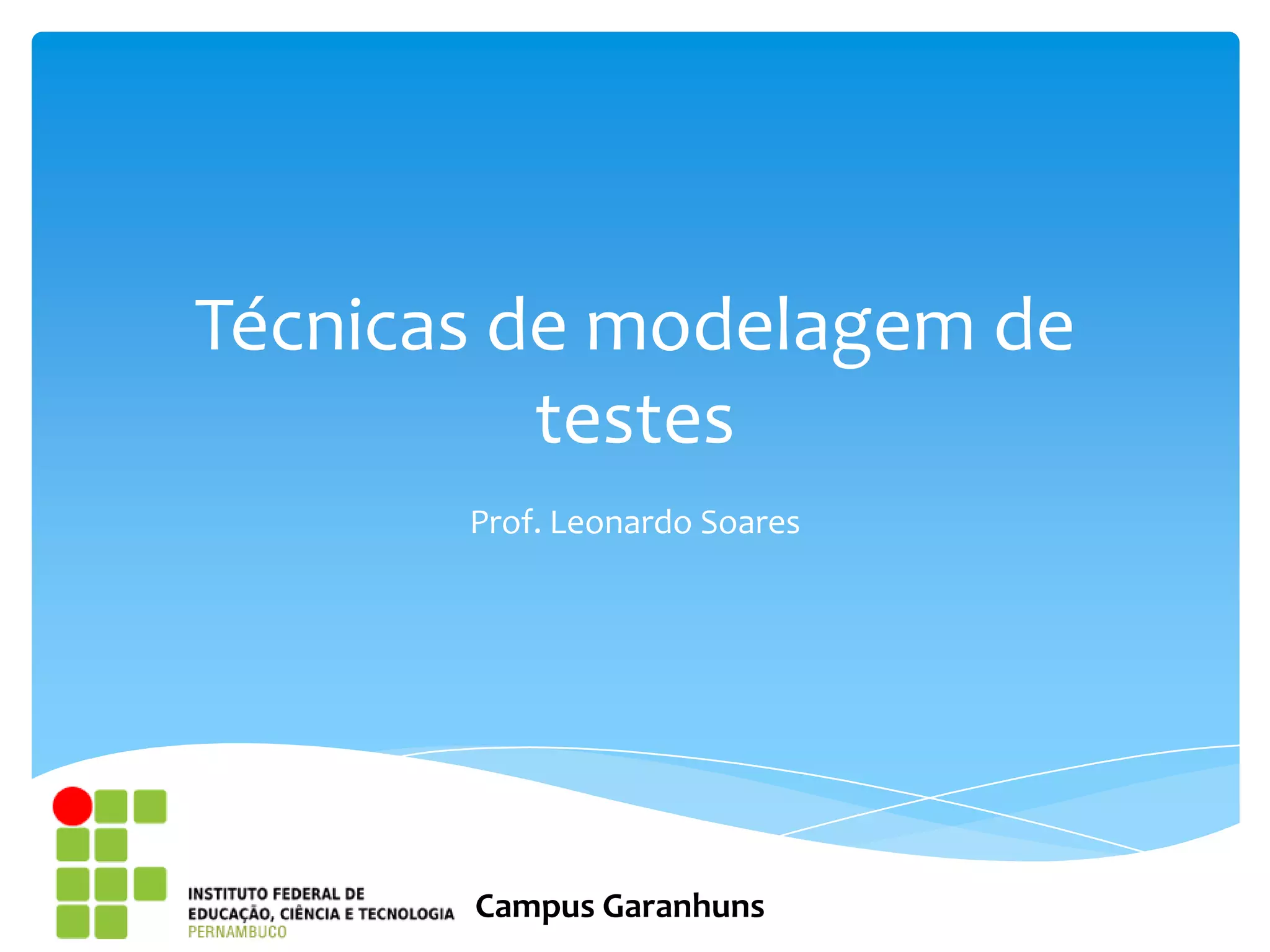 O documento aborda técnicas de modelagem de testes para validar métodos de programação, destacando a importância da escolha adequada de testes representativos devido a restrições de tempo e custo. O autor discute técnicas como partição por equivalência e método dos valores-limite para otimizar o processo de teste, utilizando exemplos práticos para ilustrar os conceitos. A análise de entradas e saídas é essencial para garantir a cobertura de falhas e melhorar a eficácia dos testes.