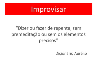 O documento discute técnicas de improviso, definindo-o como falar ou agir sem preparação prévia. Ele lista situações comuns de improviso como entrevistas ou quando questionados, e fornece estratégias para melhorar como se concentrar na ideia e não na forma. O documento também oferece treinamentos e consultorias em comunicação e improviso.