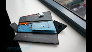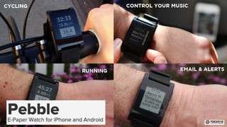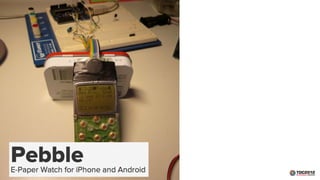 O documento discute as tendências da computação ubíqua, internet das coisas e computação pervasiva. Apresenta exemplos de projetos que usam sensores e dados coletados do mundo real para criar novas experiências e solucionar problemas. Também discute como novas tecnologias baratas e acessíveis permitem que pessoas comuniquem independentemente e criem o futuro de forma colaborativa.