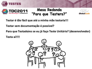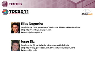 Este documento resume as palestras da trilha de teste da conferência TDC 2011, incluindo tópicos como vulnerabilidades de aplicações web, testes ágeis, testes exploratórios, automação de testes e especificações executáveis.