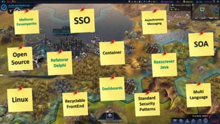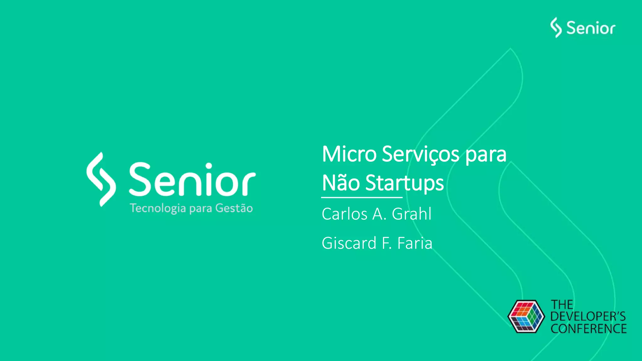 O documento discute a evolução da arquitetura de software da empresa Senior Sistemas ao longo dos anos, passando de uma arquitetura monolítica para microserviços. Apresenta a nova plataforma baseada em microserviços desenvolvida para dar suporte aos sistemas da empresa de forma escalável e independente de tecnologia. Explica conceitos como serviços stateless, comunicação assíncrona, banco de dados multi-tenant e cache compartilhado.