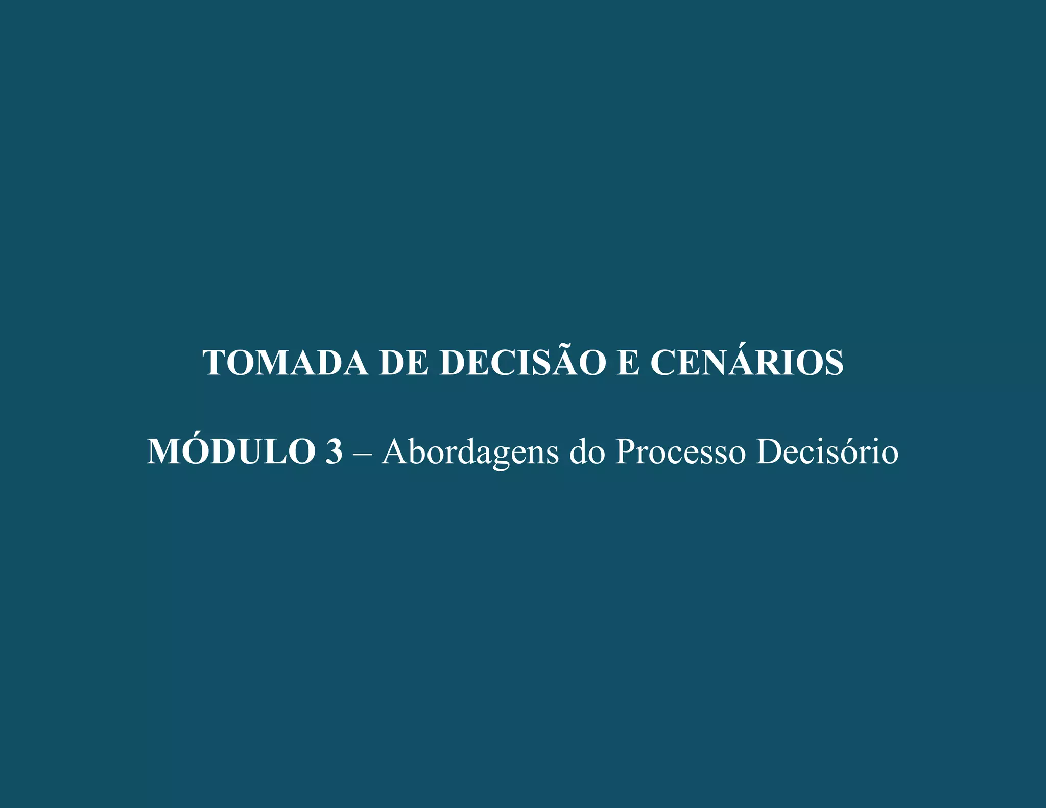 O documento discute três abordagens para o processo decisório: a abordagem integrada, a abordagem descritiva e a abordagem prescritiva. Ele explica os principais conceitos dessas abordagens e como a abordagem integrada busca integrar aspectos das outras duas abordagens.