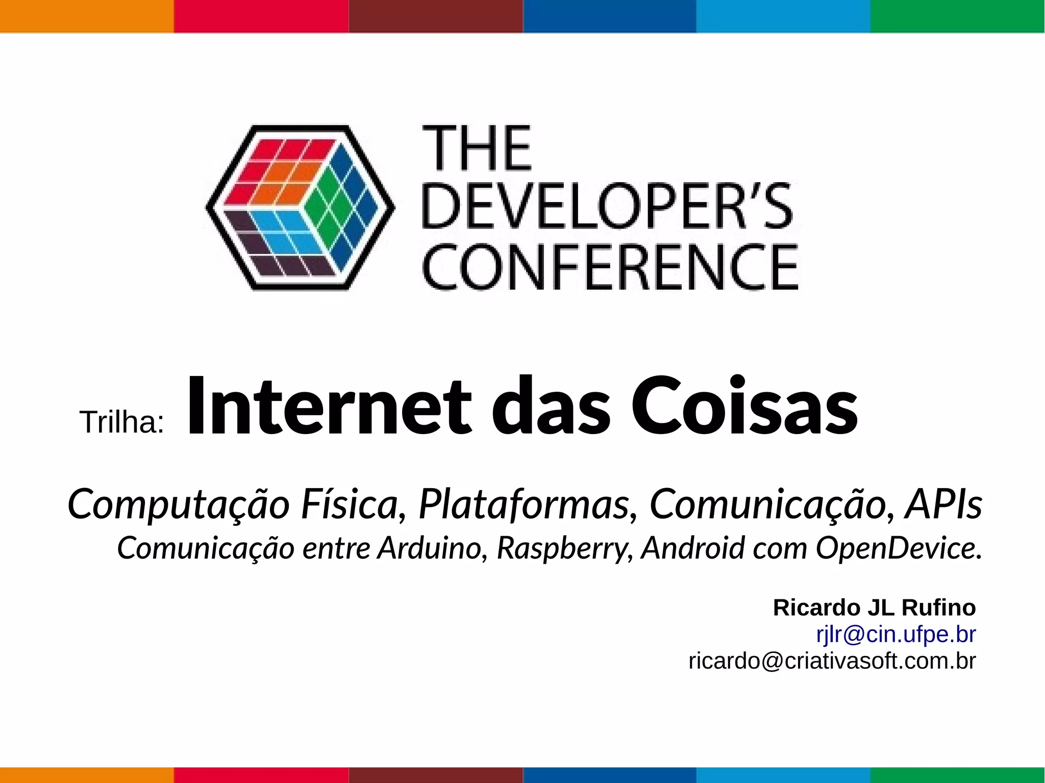 O documento discute a Internet das Coisas e apresenta a plataforma Arduino. Apresenta exemplos de uso de sensores e shields com Arduino, além de projetos como automação residencial. Por fim, discute alternativas de comunicação entre dispositivos como Arduino, Raspberry Pi e Android utilizando a plataforma OpenDevice.