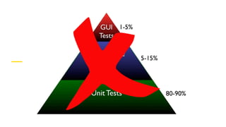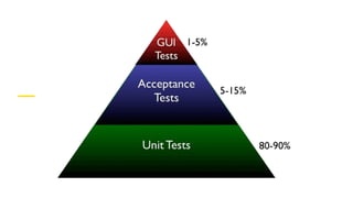 O documento discute testes no Android, abordando conceitos como mocks, frameworks de teste, organização de testes e como testar dependências externas. Ele também fornece dicas sobre por onde começar a escrever testes e como garantir uma execução tranquila.