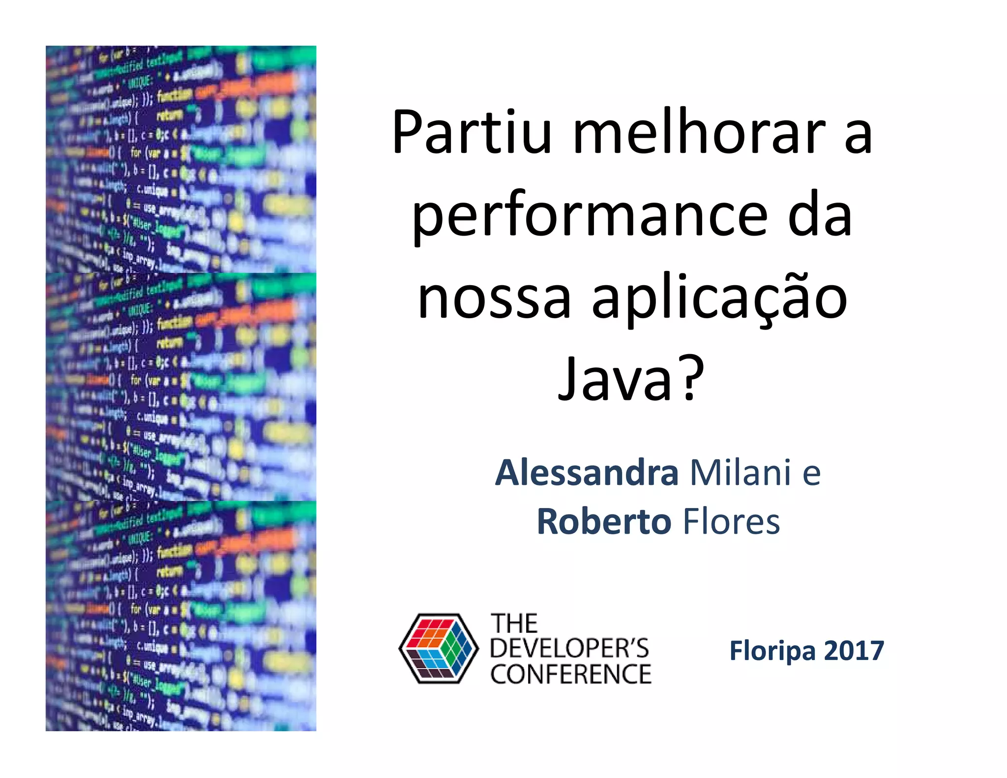 O documento apresenta dicas para melhorar o desempenho de aplicações Java, como usar tipos primitivos, declarar métodos de forma estática quando possível e evitar algoritmos complexos. Também fornece recomendações sobre ferramentas de monitoramento como Java VisualVM para analisar uso da CPU, memória e threads.