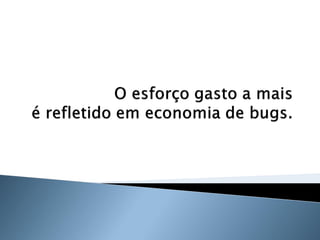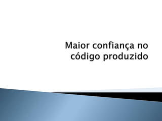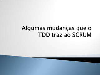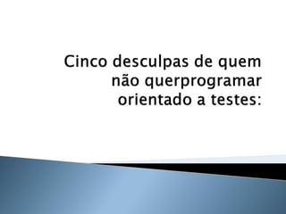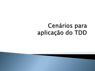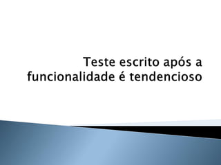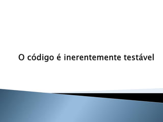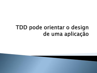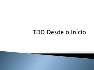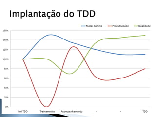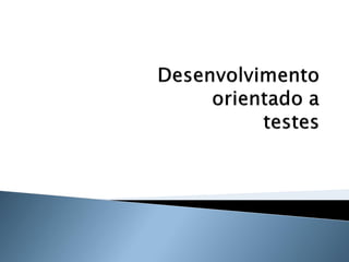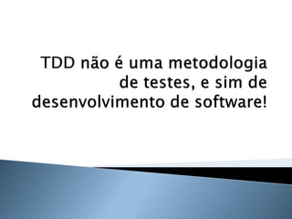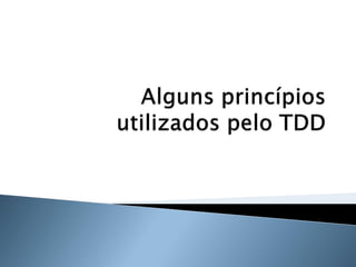 O documento discute os princípios e benefícios do desenvolvimento guiado por testes (TDD), incluindo que testes automatizados fornecem documentação executável e feedback rápido, e que o TDD promove a qualidade de software através de testes funcionais e unitários escritos antes do código.