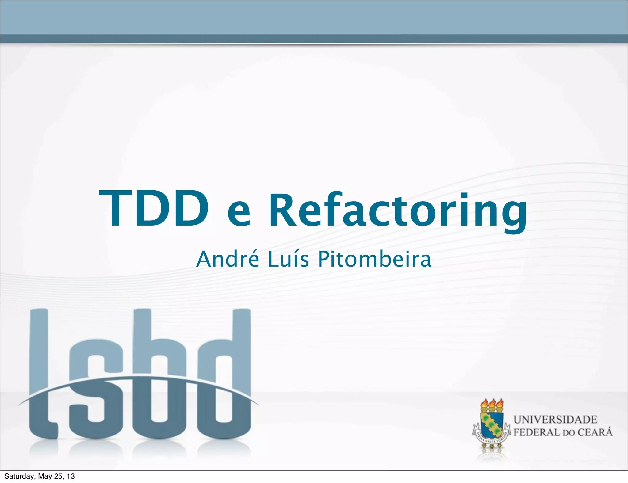 O documento apresenta um curso sobre TDD (Test-Driven Development) e Refactoring. O curso tem como objetivos definir os principais conceitos relacionados a TDD e Refactoring, mostrar boas práticas de programação e design de sistemas, e demonstrar o uso de ferramentas. A programação será dividida em TDD e Refactoring, abordando conceitos, benefícios, técnicas e exercícios práticos de cada tema.