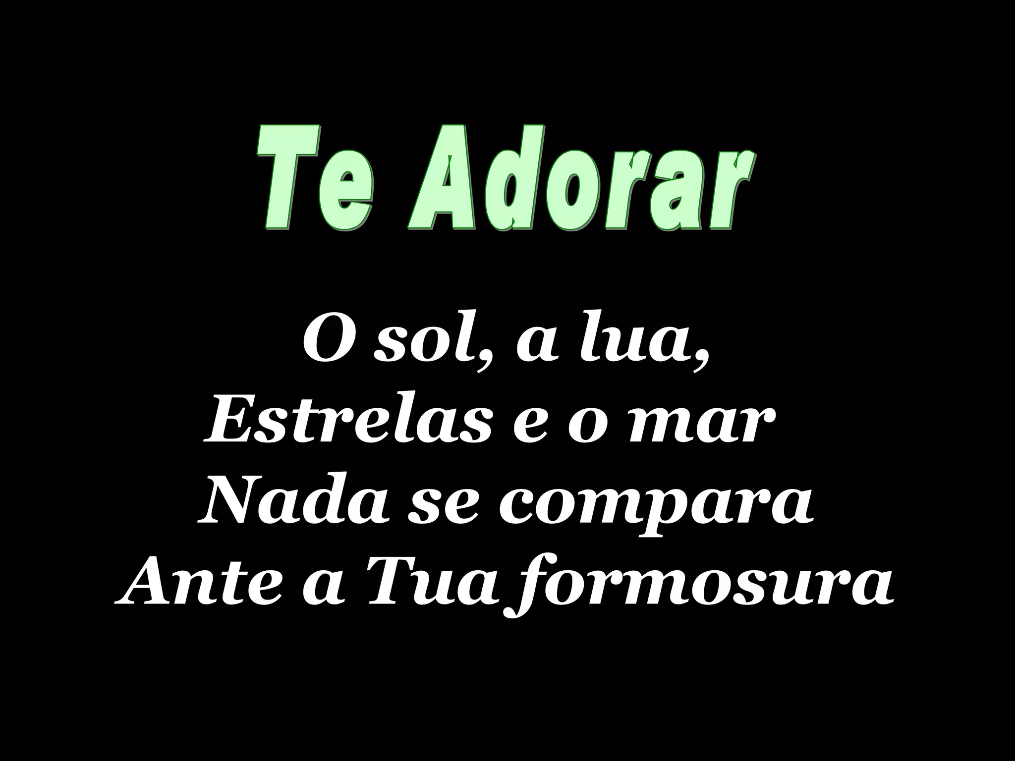 O documento exalta a beleza e majestade de Deus, afirmando que todas as coisas existem por Ele e para Ele. O autor expressa seu desejo de adorar e amar a Deus acima de todas as outras coisas.