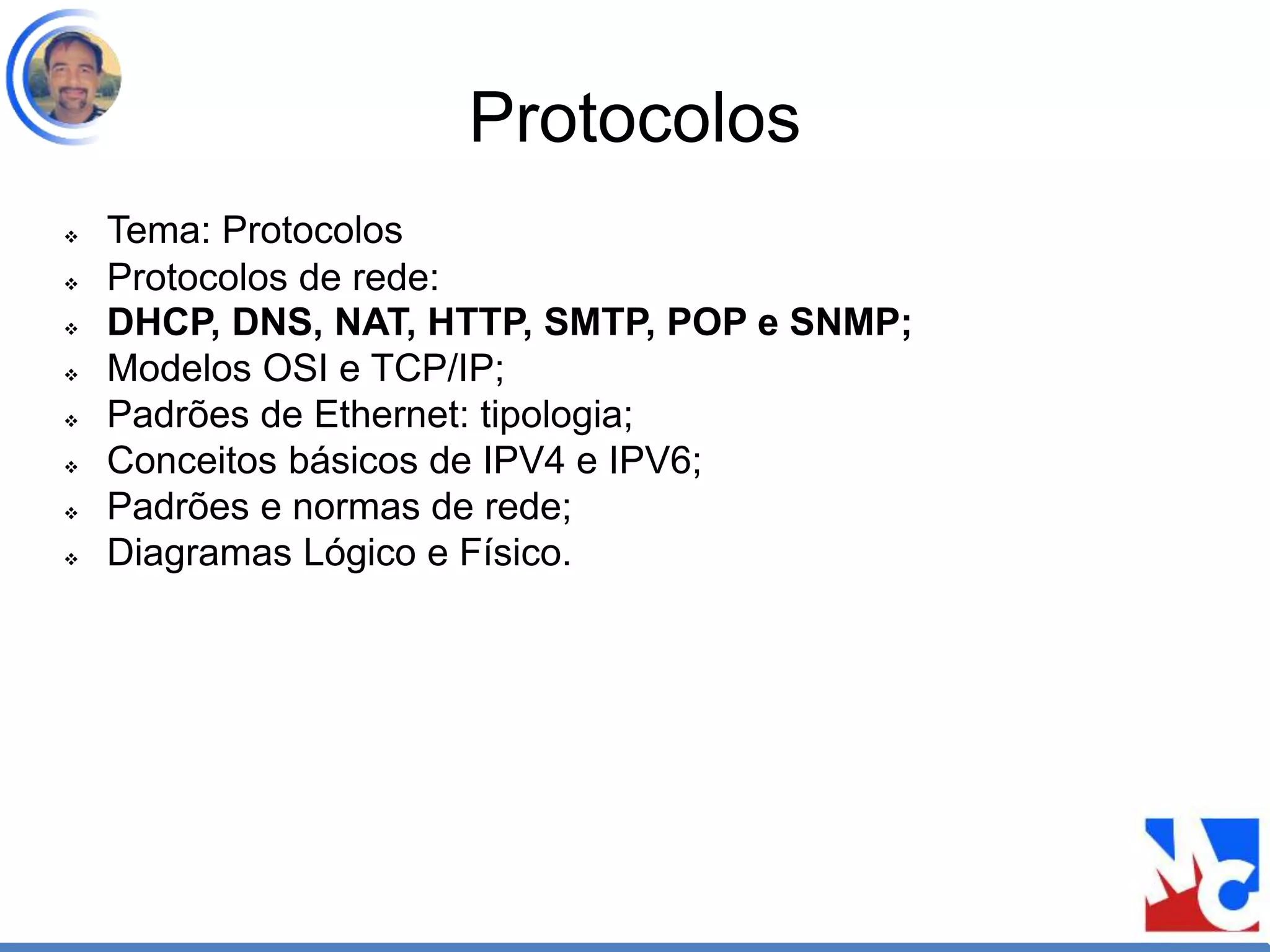 Este documento discute protocolos de rede. Ele explica os modelos OSI e TCP/IP, incluindo suas camadas e diferenças. Também cobre protocolos comuns como DHCP, DNS, NAT, HTTP, SMTP, POP e SNMP, além de padrões Ethernet, IPv4, IPv6 e diagramas lógicos e físicos de rede.