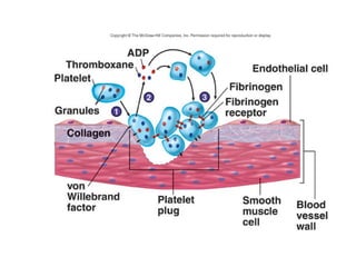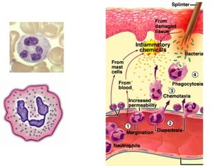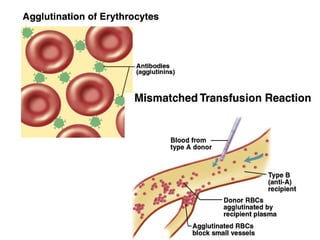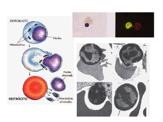 O documento descreve as características e funções do sangue e seus componentes. O sangue é um tecido especializado que transporta gases, nutrientes, excretas e moléculas reguladoras para todos os tecidos do corpo. É composto principalmente de plasma e elementos figurados como hemácias, leucócitos e plaquetas.