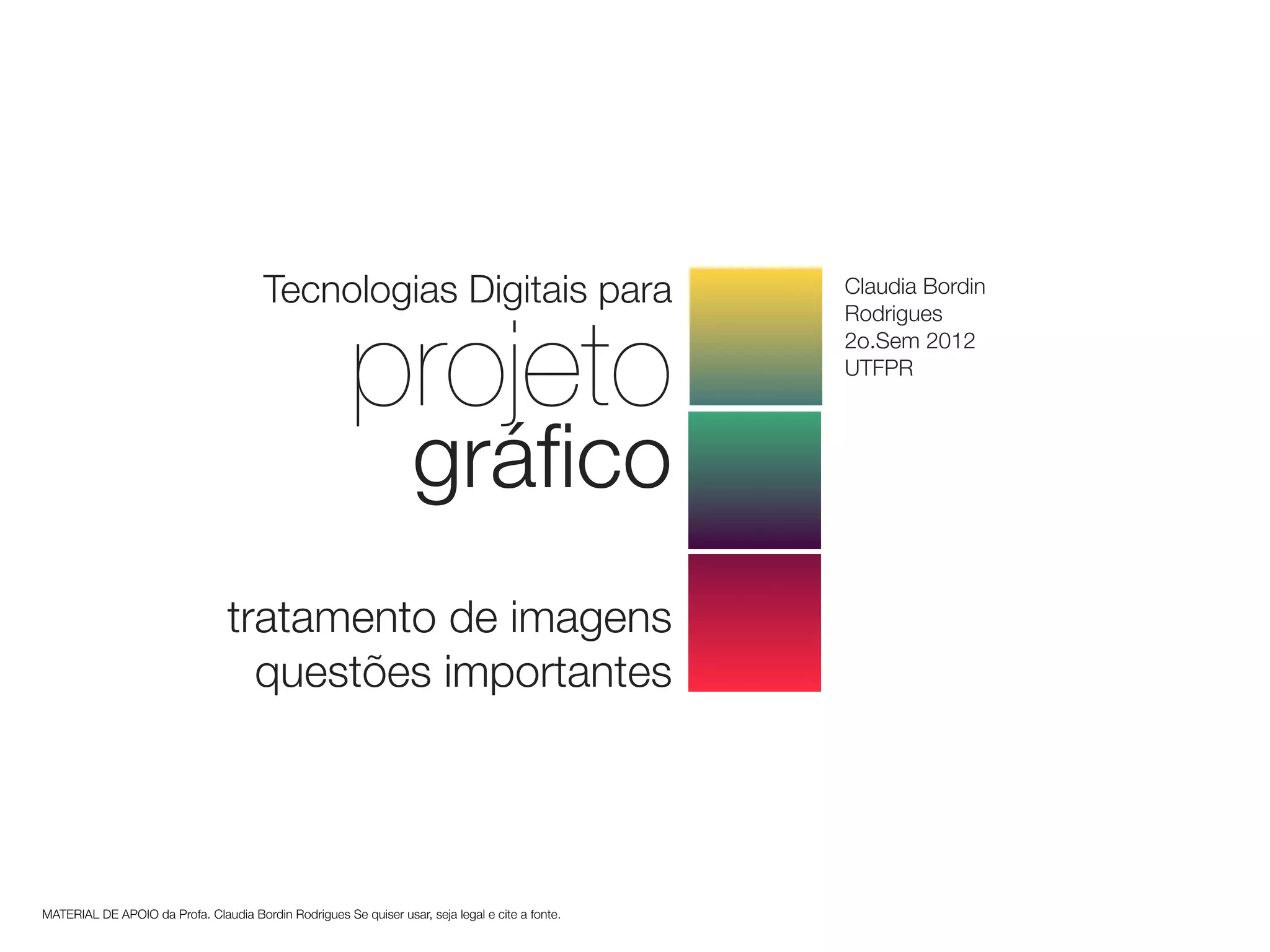 O documento discute conceitos básicos de tratamento de imagens no Photoshop, incluindo seleções, camadas, ferramentas de edição e correção. Ele fornece instruções sobre como usar ferramentas como Lasso, Marquee, Seleção Mágica, Clone Stamp, Healing e High Pass para editar imagens. O documento também lista alguns exercícios práticos como montagem entre camadas, colorização, ajuste de luminosidade e suavização de expressões faciais.