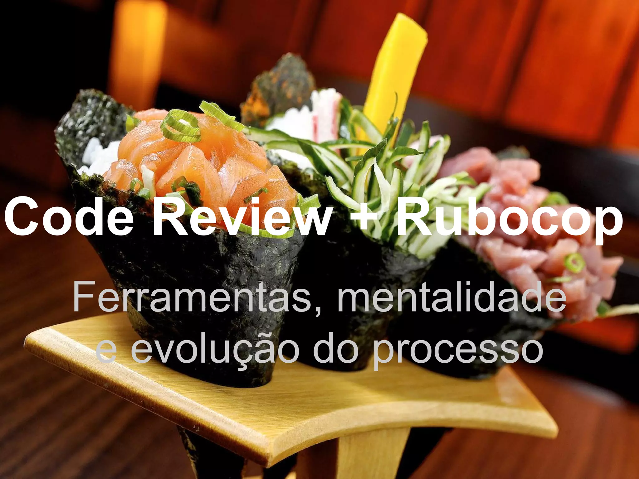 O documento aborda a evolução do processo de revisão de código, destacando a importância de práticas como rubberduck debugging e a utilização de ferramentas como Rubocop para melhorar a qualidade do código. Inicialmente, as revisões focaram em aspectos superficiais, mas com o tempo passaram a considerar fatores como arquitetura e segurança. Resultados positivos foram observados em um ano, com maior difusão de conhecimento e colaboração na equipe.