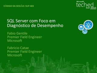O documento discute diagnóstico de desempenho no SQL Server, abordando altos consumos de CPU, waits e locks. É apresentada uma metodologia para identificar a causa do alto consumo de CPU analisando logs e planos de execução de queries. Wait statistics são explicadas como forma de identificar gargalos como I/O e log writes. Problemas de travamento são discutidos, com foco em compatibilidade e hierarquia de locks.