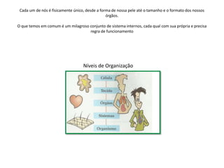 O documento descreve os principais tipos e características do tecido conjuntivo no corpo humano. Apresenta informações sobre as células, fibras e substância fundamental que compõem o tecido conjuntivo, bem como os tipos de tecido conjuntivo frouxo, denso, adiposo, cartilaginoso, ósseo e sanguíneo. Por fim, inclui exercícios sobre os componentes e funções desses tecidos.